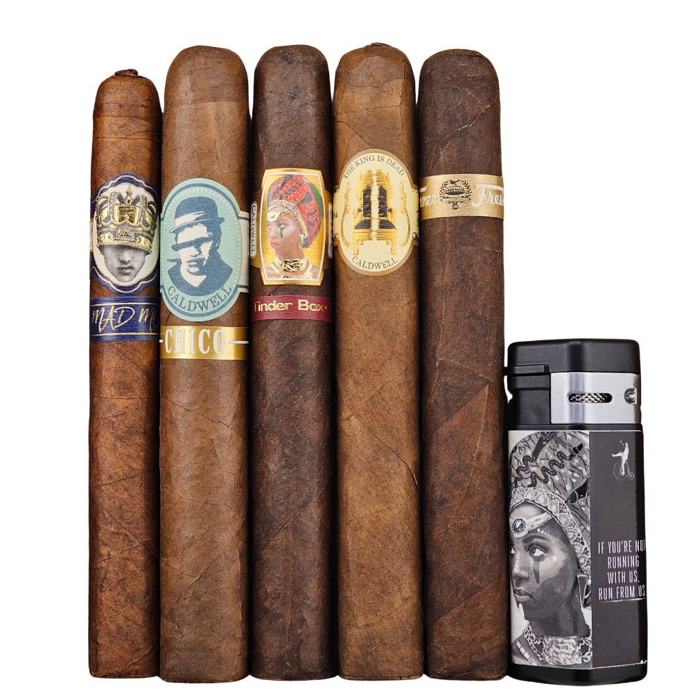 The Caldwell Sampler is a full-spectrum showcase of Caldwell Cigars’ most iconic personalities—from unapologetic power to smooth, elegant nuance—rounded out with a Caldwell Cigars Torch Lighter to keep the experience turnkey and gift-ready.