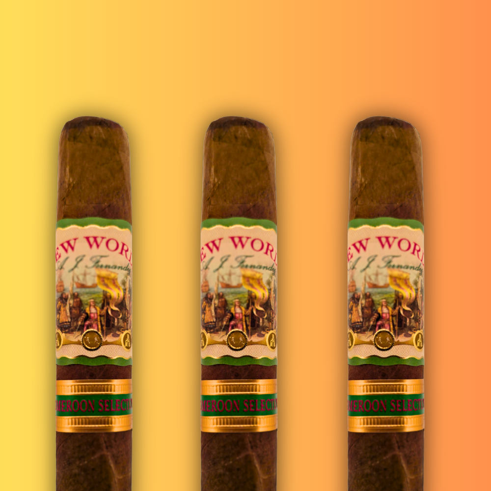 The New World Cameroon by AJ Fernandez delivers a vibrant, medium-bodied profile wrapped in a genuine African Cameroon leaf—a rarity in today’s market. Paired with a Nicaraguan binder and long-fillers from AJ’s own farms, this cigar offers a refined, old-world elegance fused with bold, modern craftsmanship.