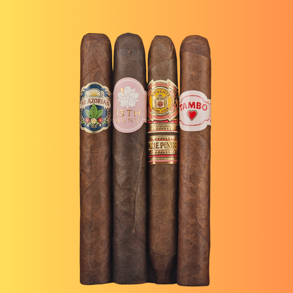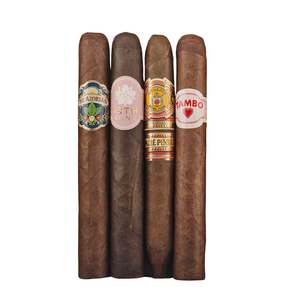 Featuring the rich, sweet-earthy Cubanesque Tradecraft Azorian, the rebellious creativity of Room 101’s 13th Anniversary, the iconic elegance of Arturo Fuente Rare Pink, and the bold everyday appeal of Tambo Habano, this pack delivers a dynamic range of flavor profiles—spanning dark, spicy, creamy, and subtly sweet.