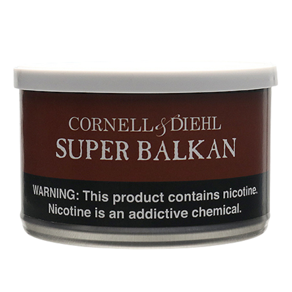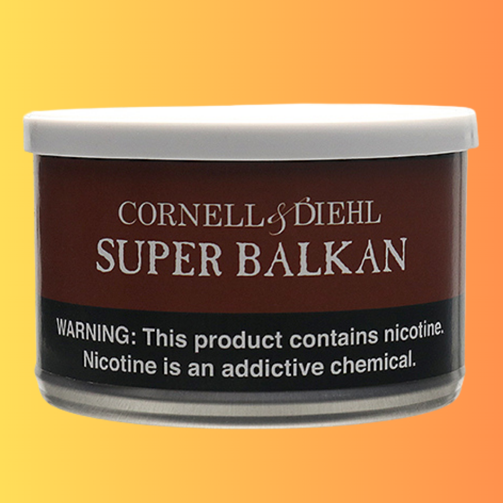 Super Balkan is mostly a bright flake mixture with Perique, Latakia, and Burley, spiked with high grade Turkish leaf. An even heavier dose of Latakia than found in Atlas Balkan. One of Cornell and Diehl's oldest blends.