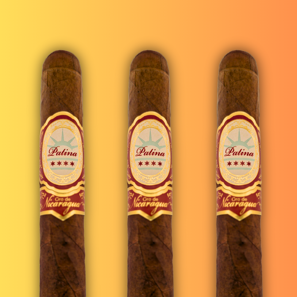 The Patina Oro de Nicaragua is the most full-bodied expression in the Patina portfolio—a bold and luxurious cigar that marks a new chapter for the brand. Blended by Mo Maali and handcrafted at Fábrica de Tabacos Nica Sueño (home of RoMa Craft), the Oro combines depth, power, and refinement in a way that reflects both its name—“Gold of Nicaragua”—and its purpose: to showcase Nicaraguan tobacco at its finest.