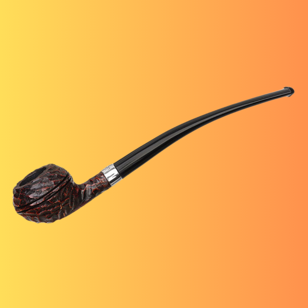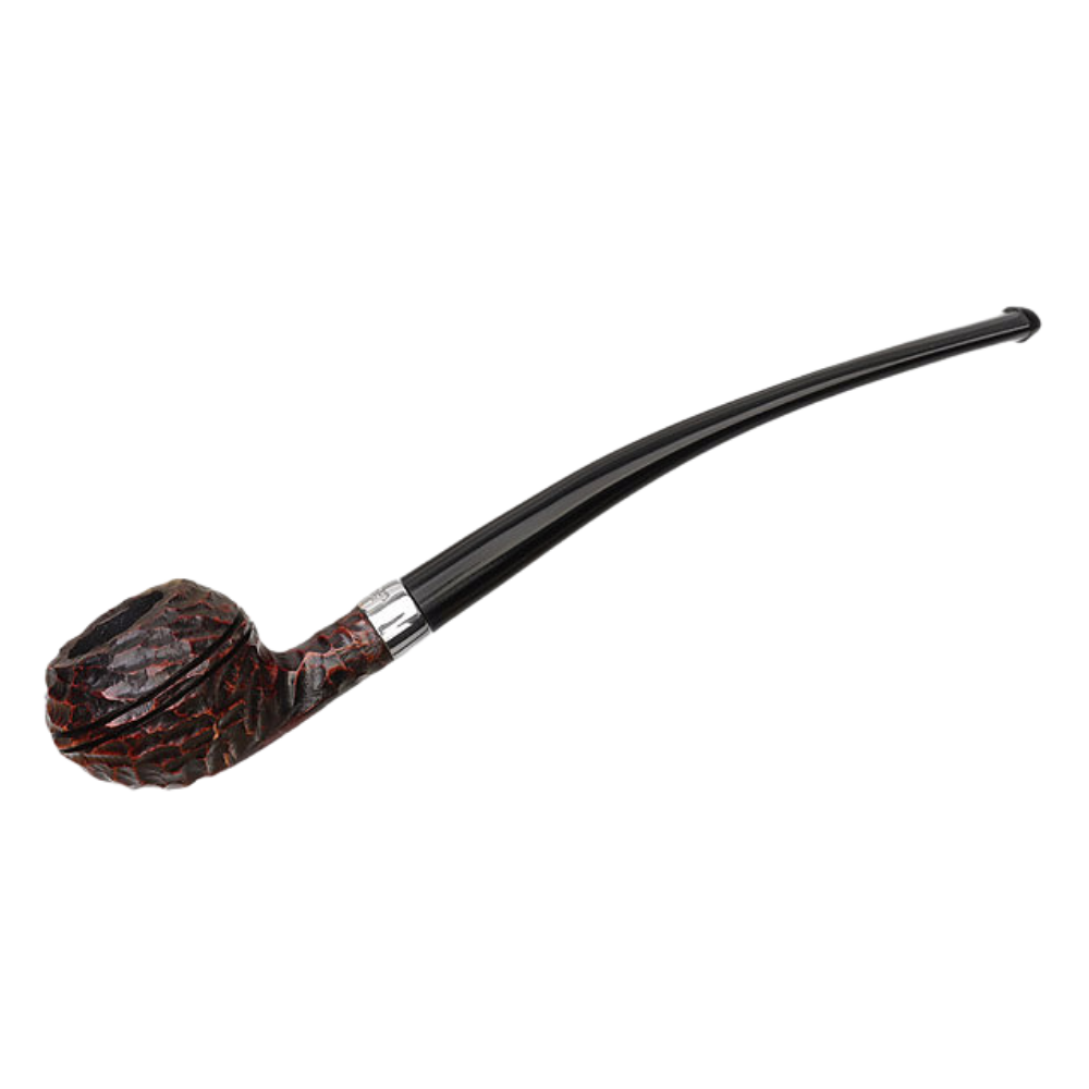 Like the Specialty series, Peterson's Tavern line offers a selection of trim, lightweight designs that eschew the Irish marque's usually robust shaping aesthetic in favor of something more petite. Taking inspiration from clay tavern pipes of old, these pieces are fitted to lengthy, demi-Churchwarden stems that ensure a relaxed, comfortable smoking posture. The series is represented here by this handsome Rhodesian shape, dressed in a craggy rustication and accented with a metallic band.