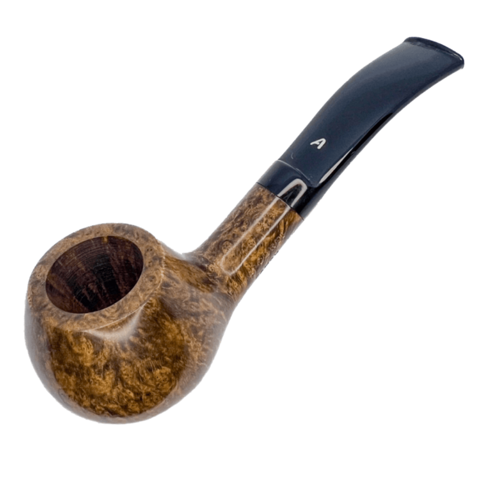 Pipemaking craftsmanship at its very best by master pipe maker Roberto Ascorti. Ascorti's briar is carefully cured and seasoned until all excess resin and moisture disappear, leaving a featherlight and absorbent briar block. No two Ascorti pipes are ever exactly alike, as each is carved by hand to the optimum shape dictated by the natural grain of the briar. Fitted with a hand-carved Lucite stem which never tarnishes and boxed with a beautiful leather glove. Production and availability are limited.