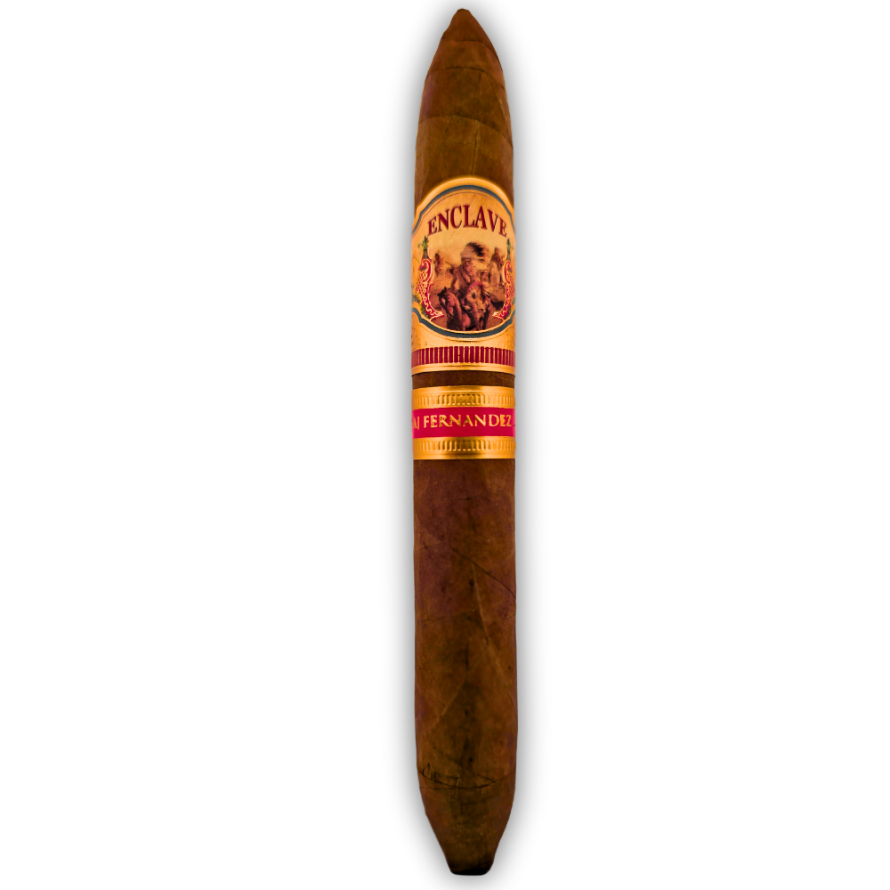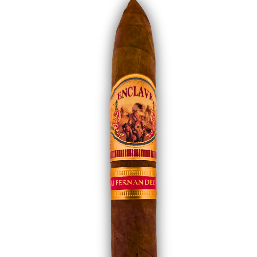 The Enclave Figurado by AJ Fernandez is a stunning homage to the cultural bond between cigar makers and enthusiasts. With its elegant tapered shape and flawless construction, this medium-bodied cigar features a silky Ecuadorian Habano Rosado wrapper over a rich Nicaraguan Piloto Cubano binder and aged Nicaraguan long-fillers.