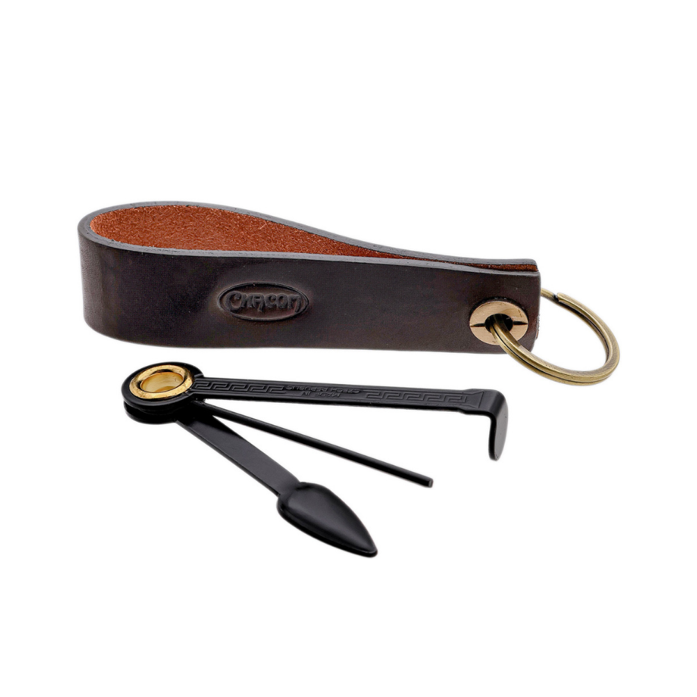 Easily travel with your pipe in quiet luxury with Chacom's genuine leather pipe rest and tool set. No matter your decision, the refined brown or elegant black leather rest will elevate your smoking experience.