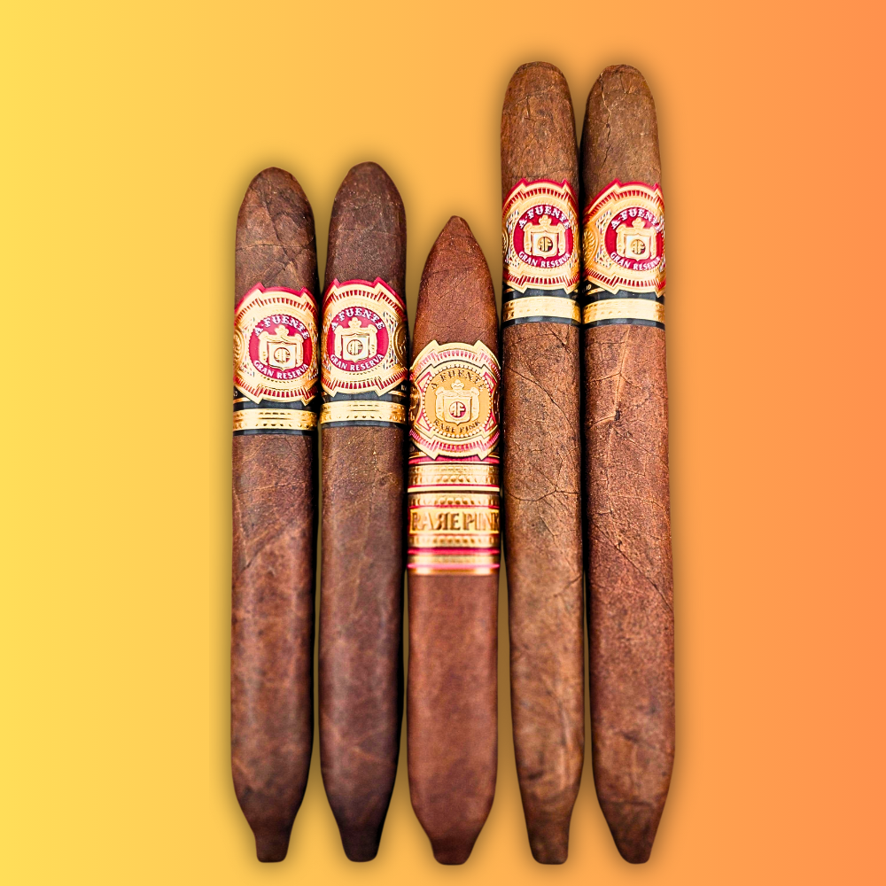 Experience the best of Fuente craftsmanship with this Tinder Box curated pack, blending timeless classics with a happy ending of rare pink. Hand-selected for both seasoned connoisseurs and curious enthusiasts, this five-cigar collection features legendary Hemingway vitolas and a limited-production Rare Pink Happy Ending.