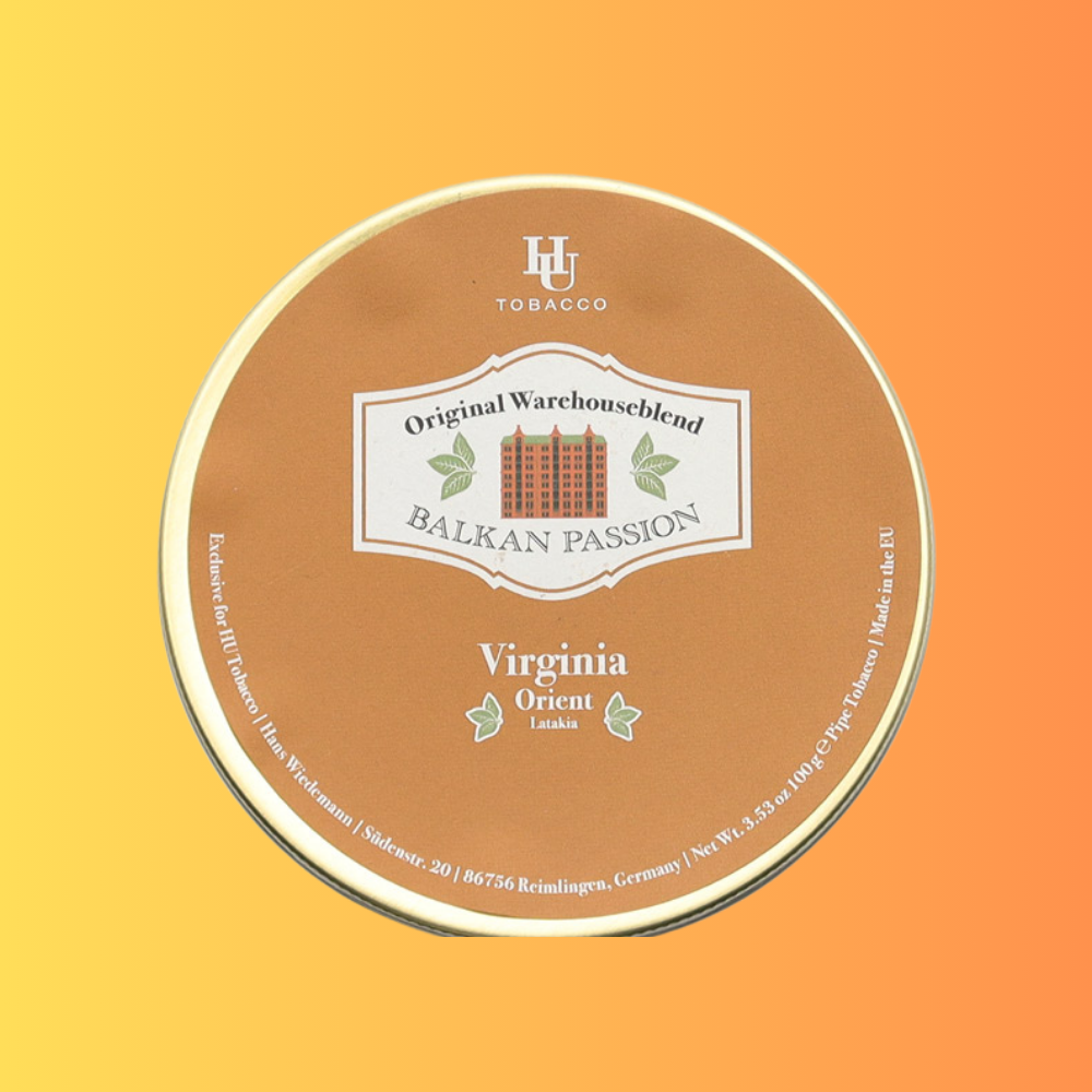 Part of HU Tobacco's Original Warehouse line, the Balkan Passion mixture features Oriental tobaccos from the Balkan regions, sweet and spicy Virginias, Cypriot Latakia, and a hint of Louisiana Perique. It's a strong, smoky blend presented in a ribbon cut.