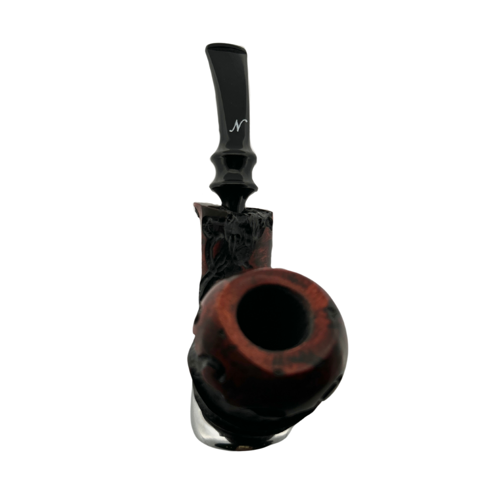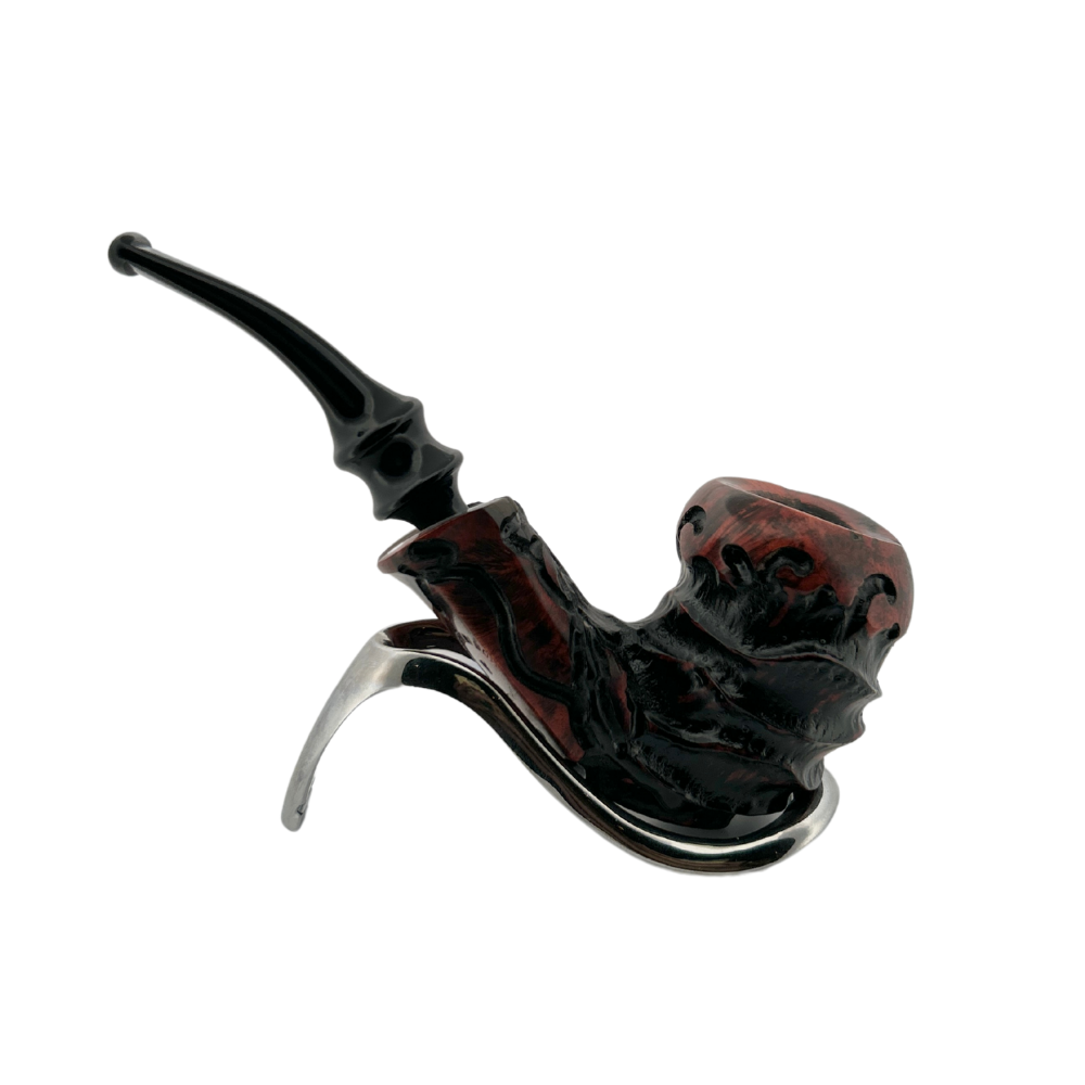 A stylized stem complements the bowl’s flowing lines and adds a contemporary touch to the design. Despite its unconventional shape, this pipe offers a well-balanced feel and a smooth, cool smoking experience.