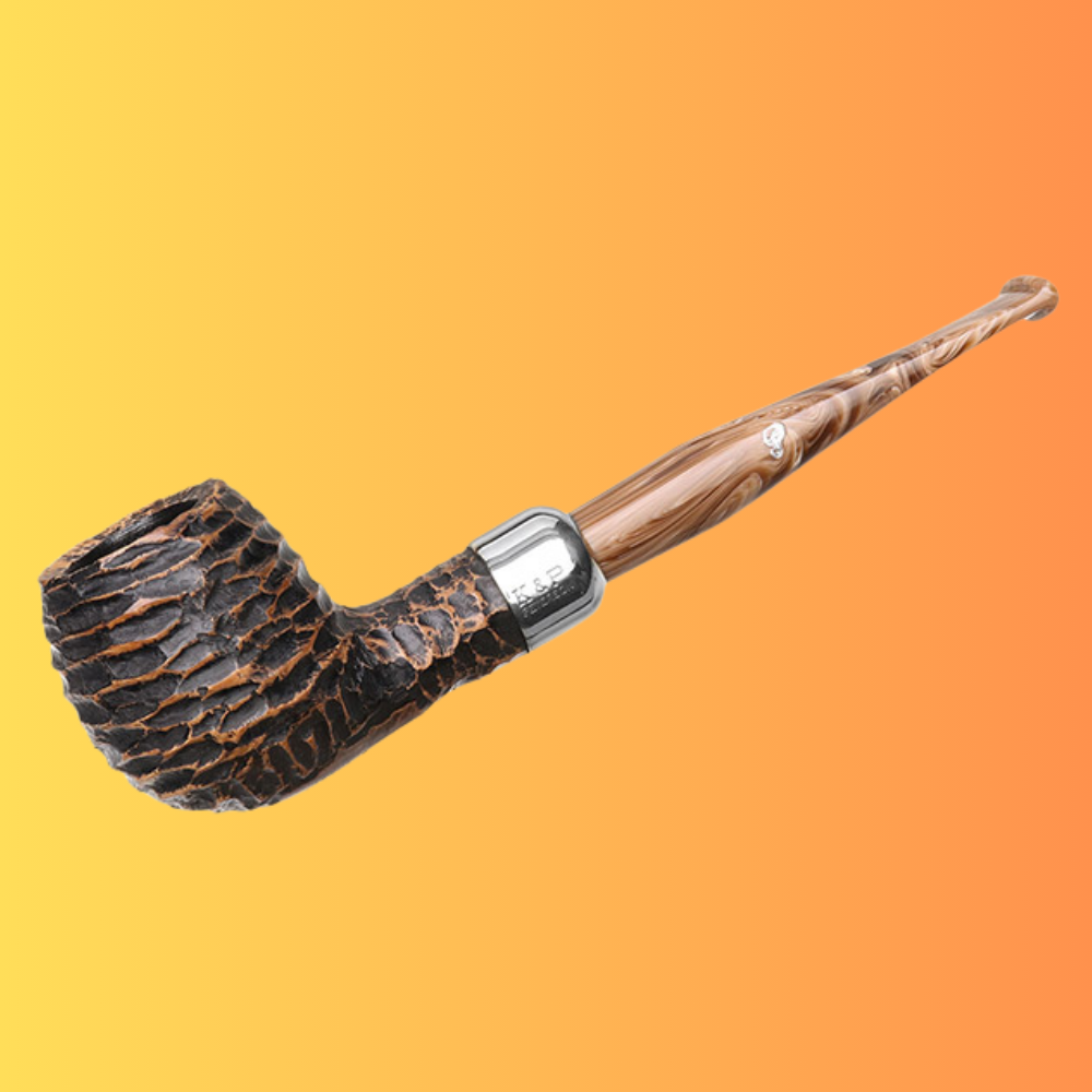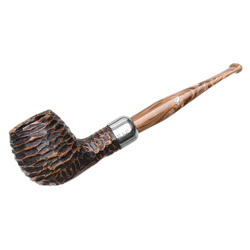 Wearing Peterson's signature rustication, the Derry Rusticated series contrasts the rugged texture against a flashy, nickel army mount and creamy, caramel-swirled acrylic stem. Fans of grooved, stimulating finishes and bright accents are sure to love this "87" straight Apple rendition.