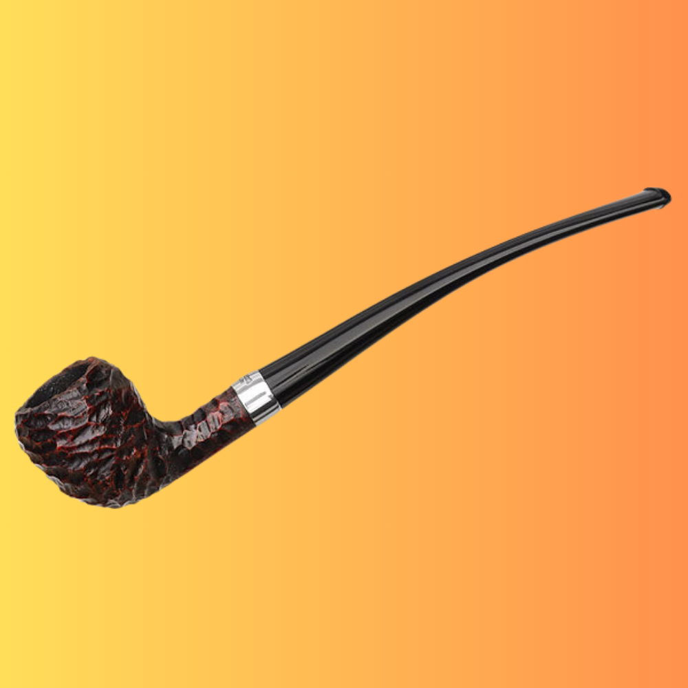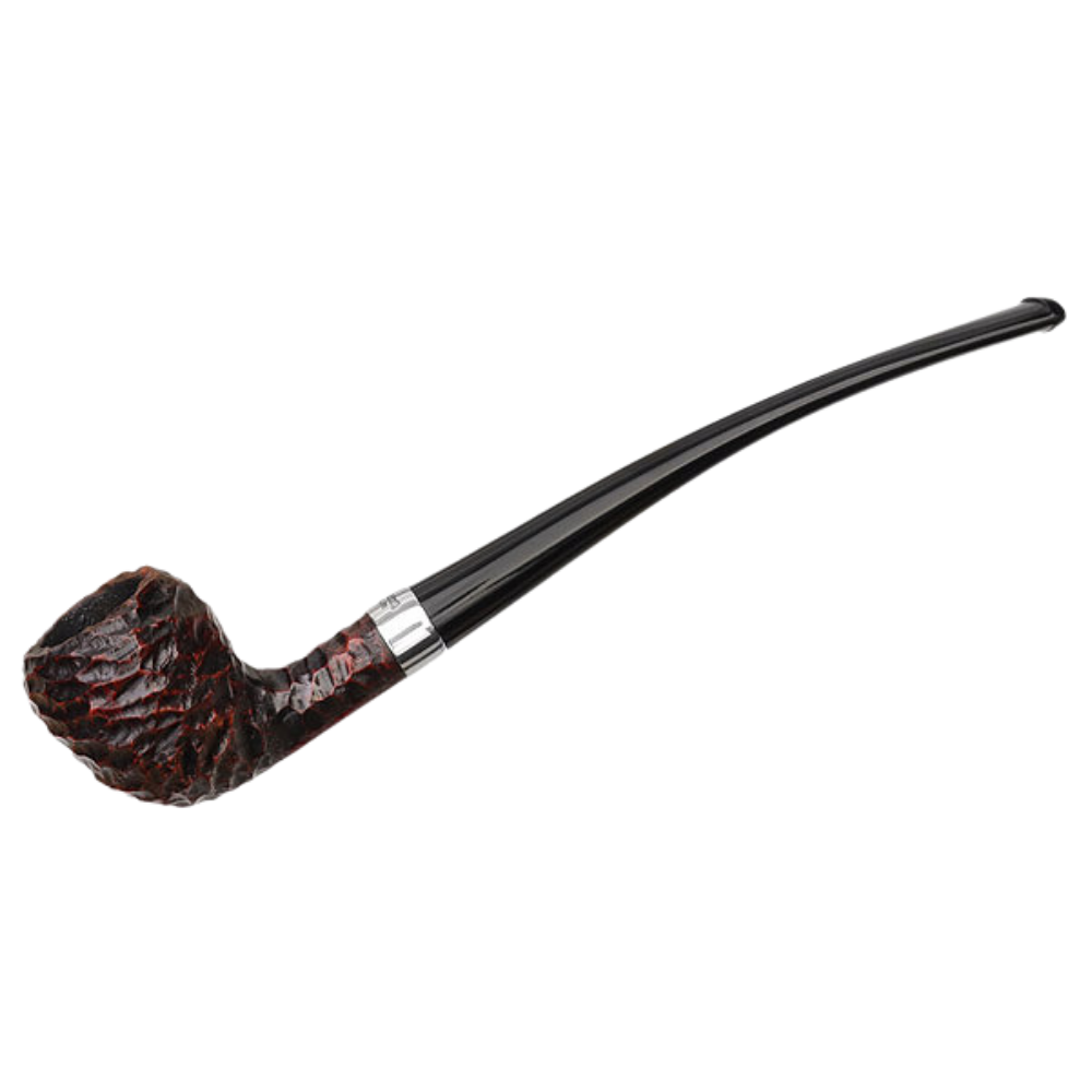 Like the Specialty series, Peterson's Tavern line offers a selection of trim, lightweight designs that eschew the Irish marque's usually robust shaping aesthetic in favor of something more petite. Taking inspiration from clay tavern pipes of old, these pieces are fitted to lengthy, demi-Churchwarden stems that ensure a relaxed, comfortable smoking posture. The series is represented here by this handsome Pear shape, dressed in a craggy rustication and accented with a metallic band.