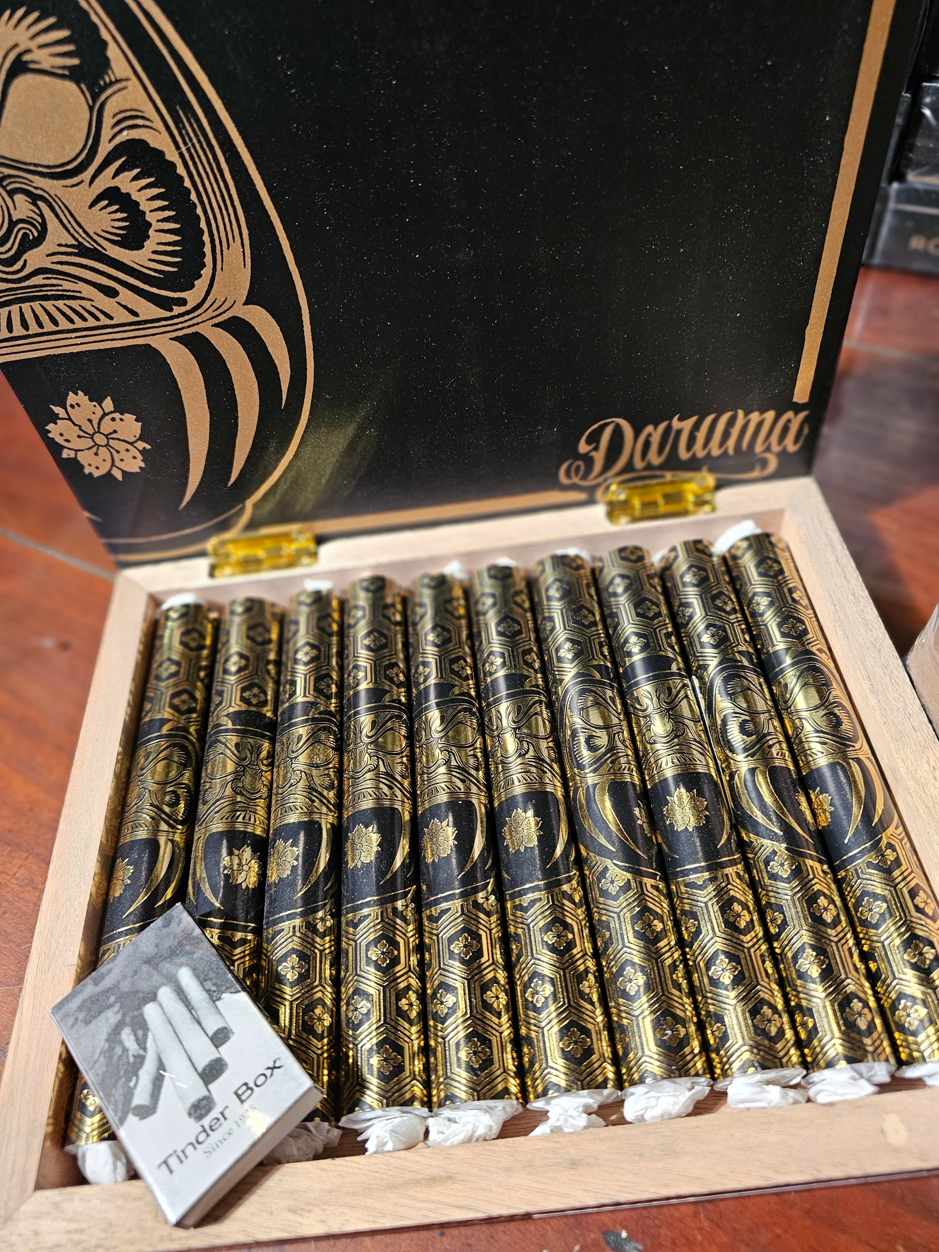 Handcrafted at AJ Fernandez’s factory in Nicaragua, the Daruma 2023 features a dark, lustrous Ecuadorian Sumatra wrapper over a U.S. Connecticut Broadleaf binder and rich Nicaraguan fillers. The result is a medium-to-full-bodied cigar brimming with flavor, construction excellence, and visual allure. It’s a statement cigar—flavor-forward, well-aged, and masterfully blended.