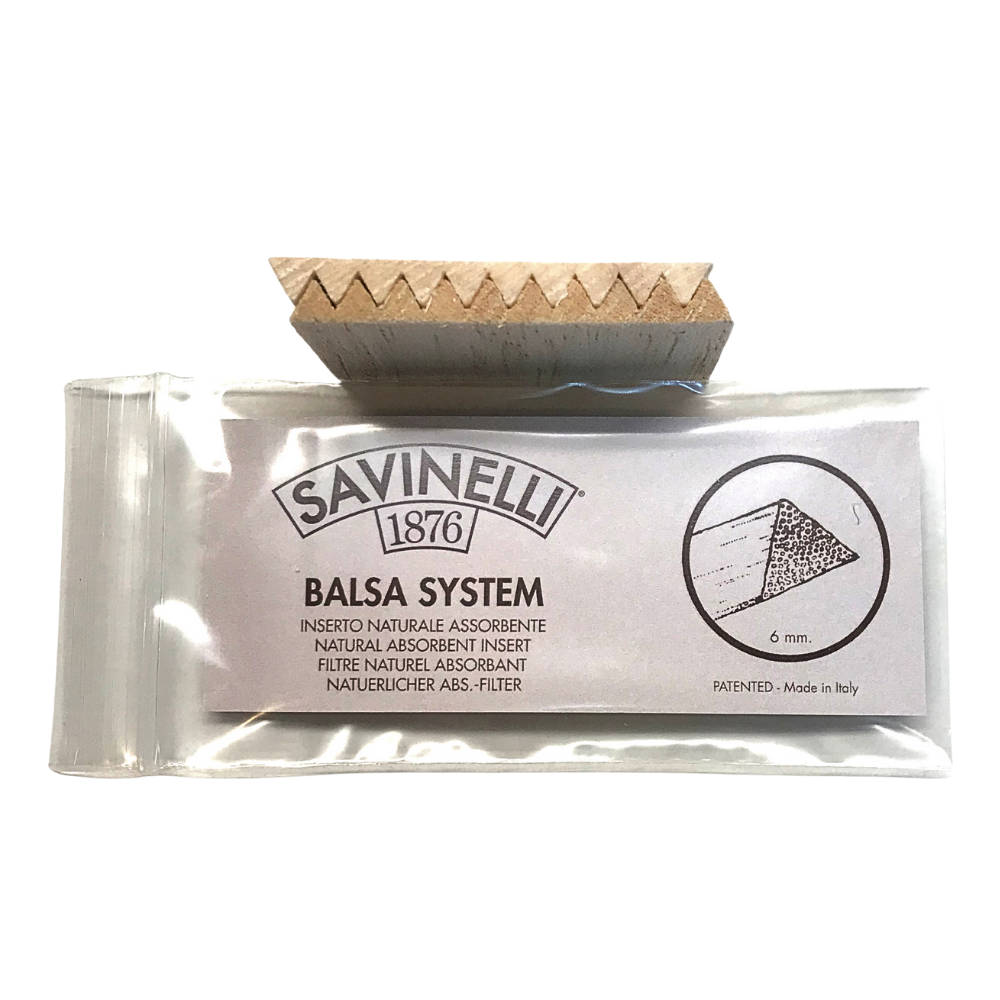Savinelli's balsa filters provide a drier smoke by the simplest of means: absorbing moisture and condensation from the smoke-stream. While many more complicated systems have come and gone, Savinelli's remains, and remains popular, being both effective and very inexpensive.