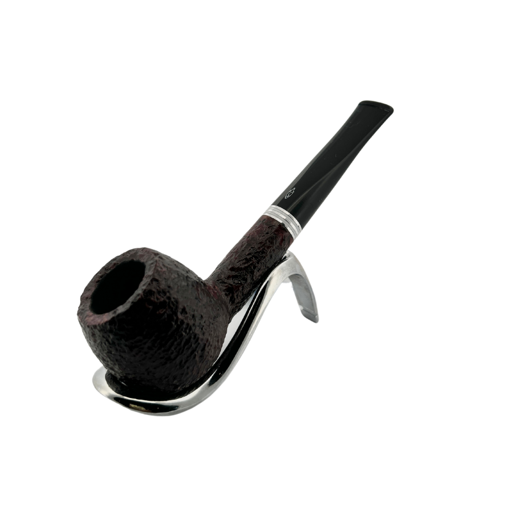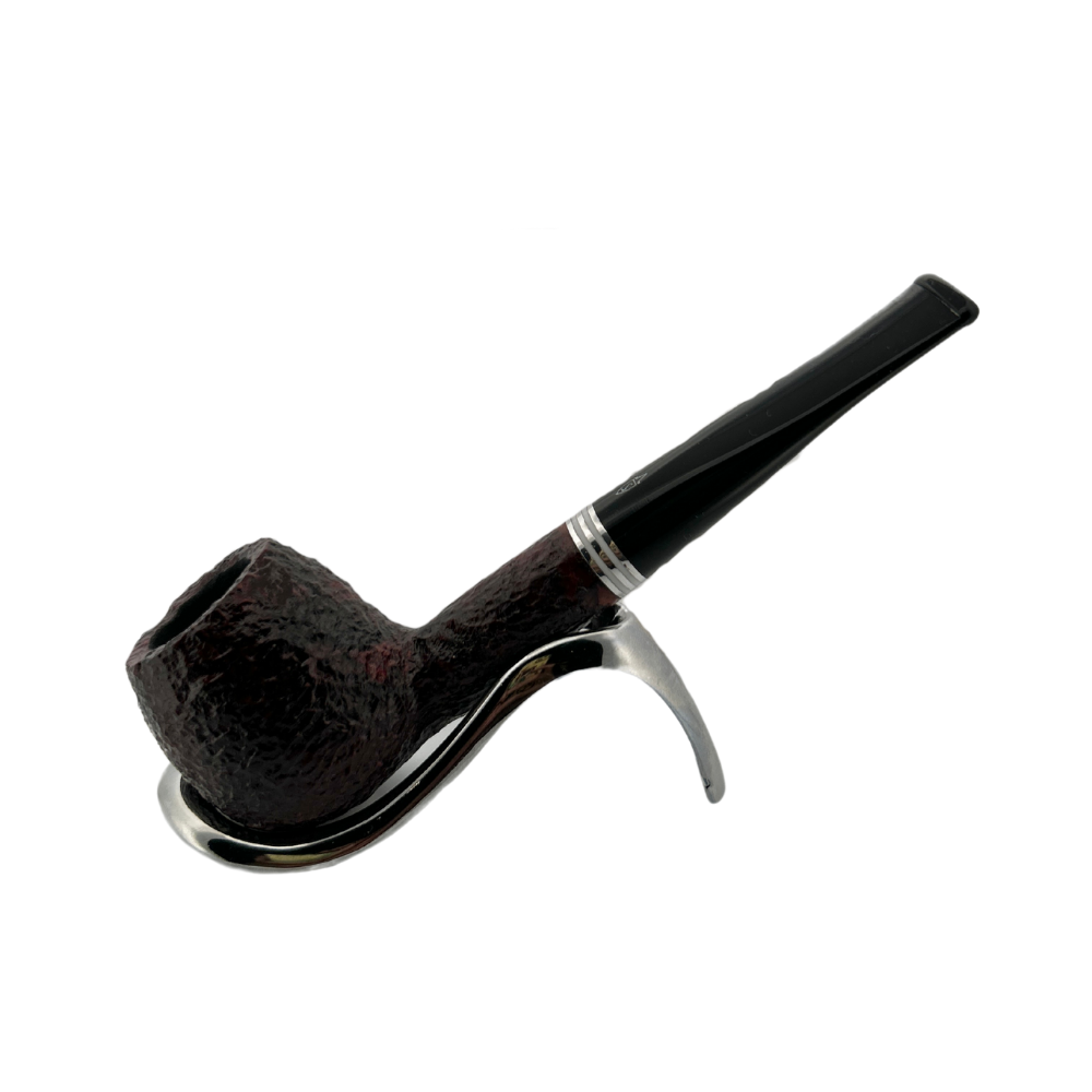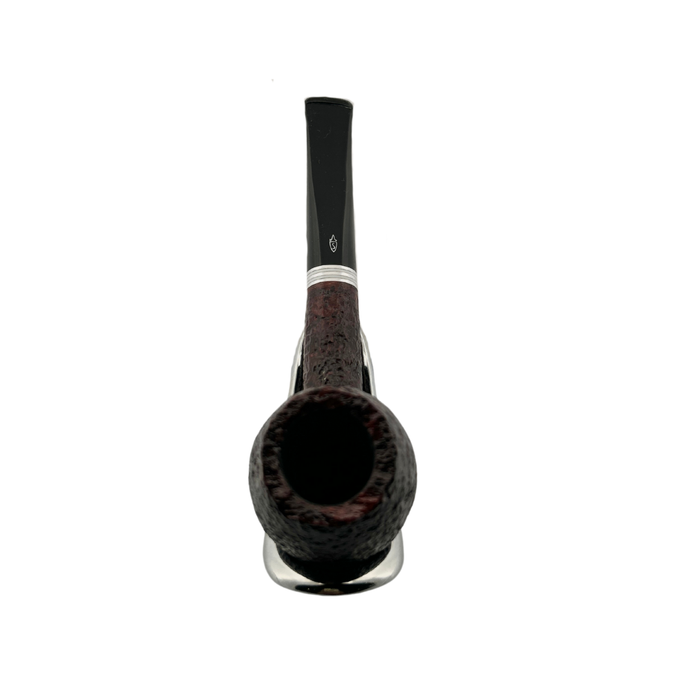 The alternating nickel-and-white acrylic accent makes for a surprisingly dapper and eye-catching complement to the sophisticated chocolate-over-dark berry rustication of Savinelli's Bianca series. It's offered here in the "207" shape, a more English-style straight Apple featuring a squarely-proportioned bowl and straightforward stem, although the proportions between bowl and stem do lean more towards the Italian school.