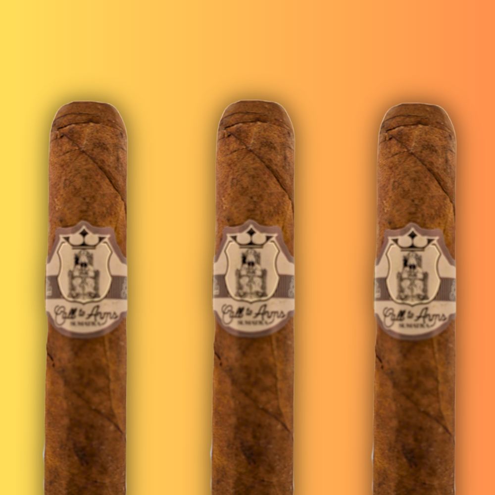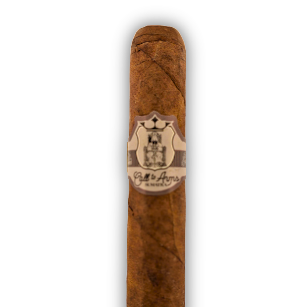 Featuring a Sumatran wrapper over a Nicaraguan binder and filler, the Call to Arms delivers a rich tapestry of flavors. Expect notes of milk chocolate, red pepper flakes, sweet cream, raw honey, tanned leather, and toasted almonds in the first third, evolving into espresso beans, black tea, caramel, vanilla, white peppercorns, brown sugar, and cinnamon as the cigar progresses .