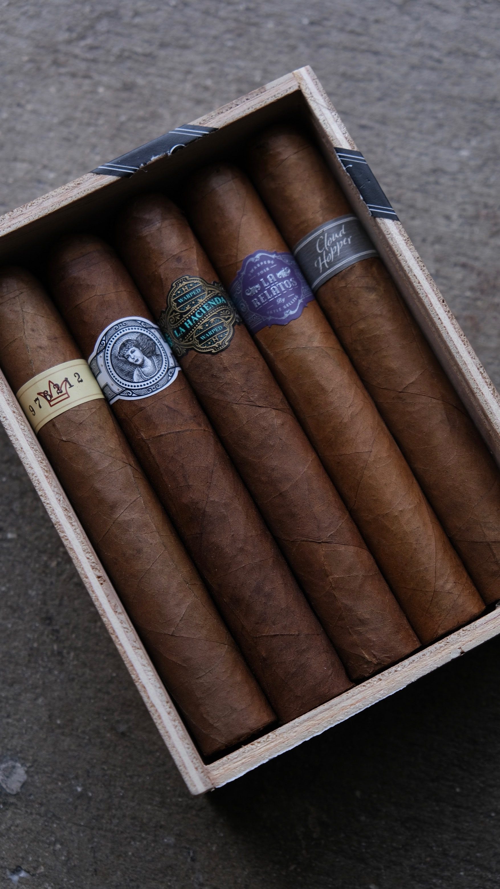"This 10ct boxed sampler includes (2) of each of the following blends in a 5.25 x 50 vitola!
