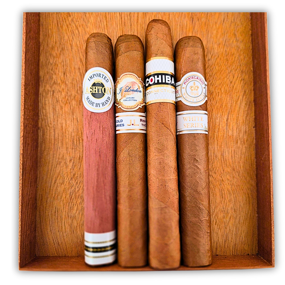 The White Label Pack is a Tinder Box–curated 4-cigar pack spotlighting elegance, refinement, and creamy sophistication. Each selection features a Connecticut-shade wrapper, delivering a luxuriously smooth experience from start to finish.