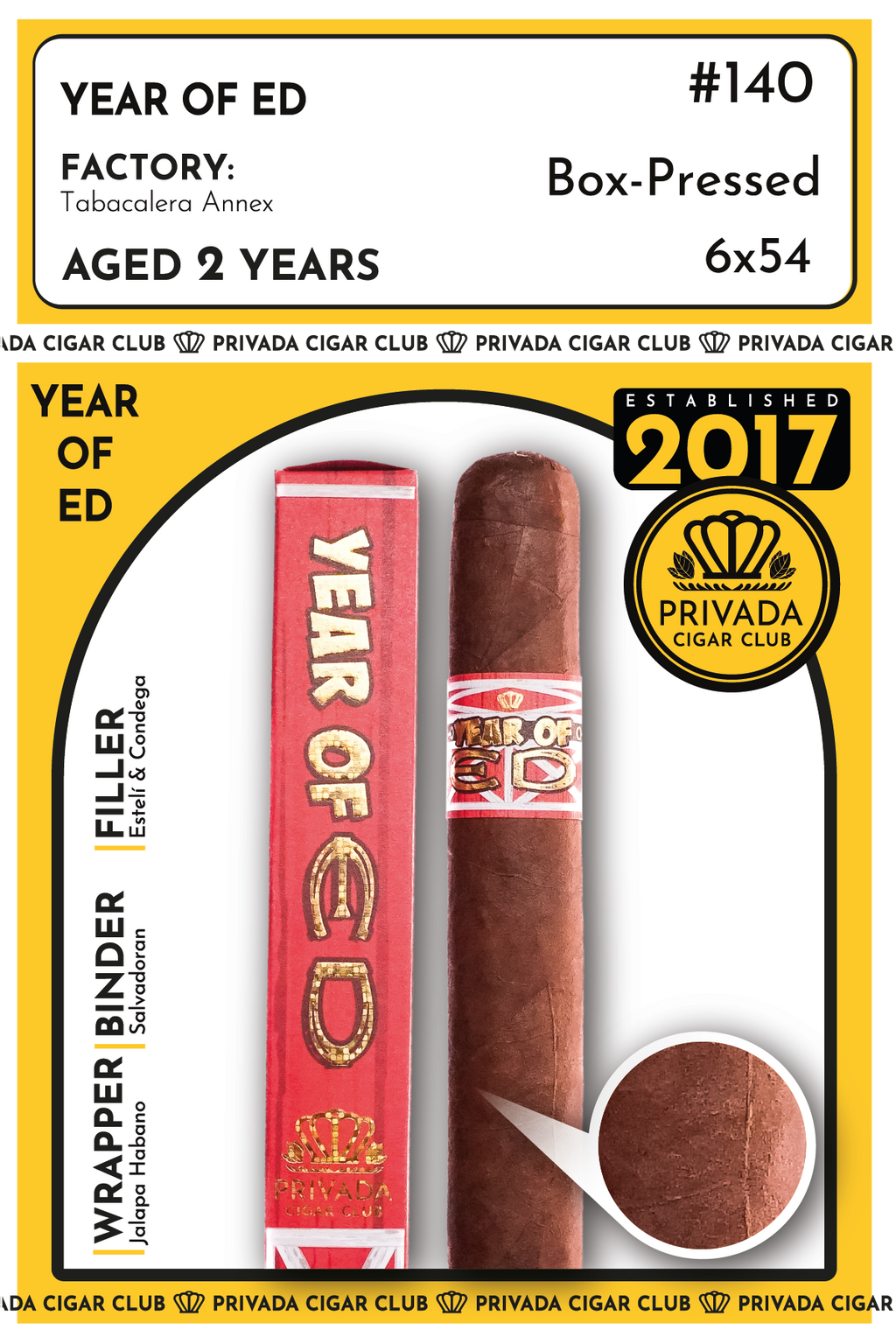 "This one is textbook Fernandez craft with a wink. We let it rest two years to calm the punch and let the sweetness bloom. When I smoke Year Of Ed it reads like a box of chocolates you forgot you had: immediate, honest cocoa, then a parade of nuts and caramel. It's plush in the middle and sharp enough at the finish to make the conversation last. This is what aged Nicaraguan tobacco is supposed to taste like."